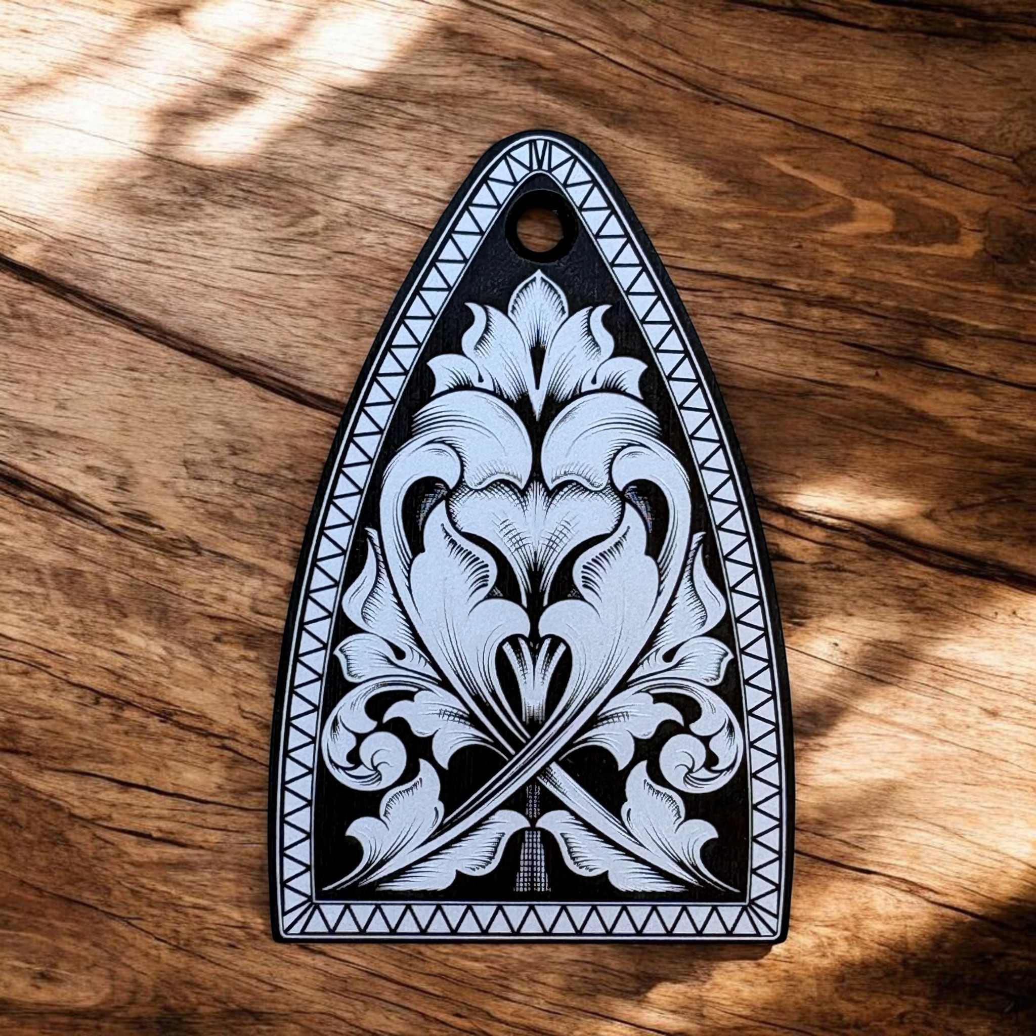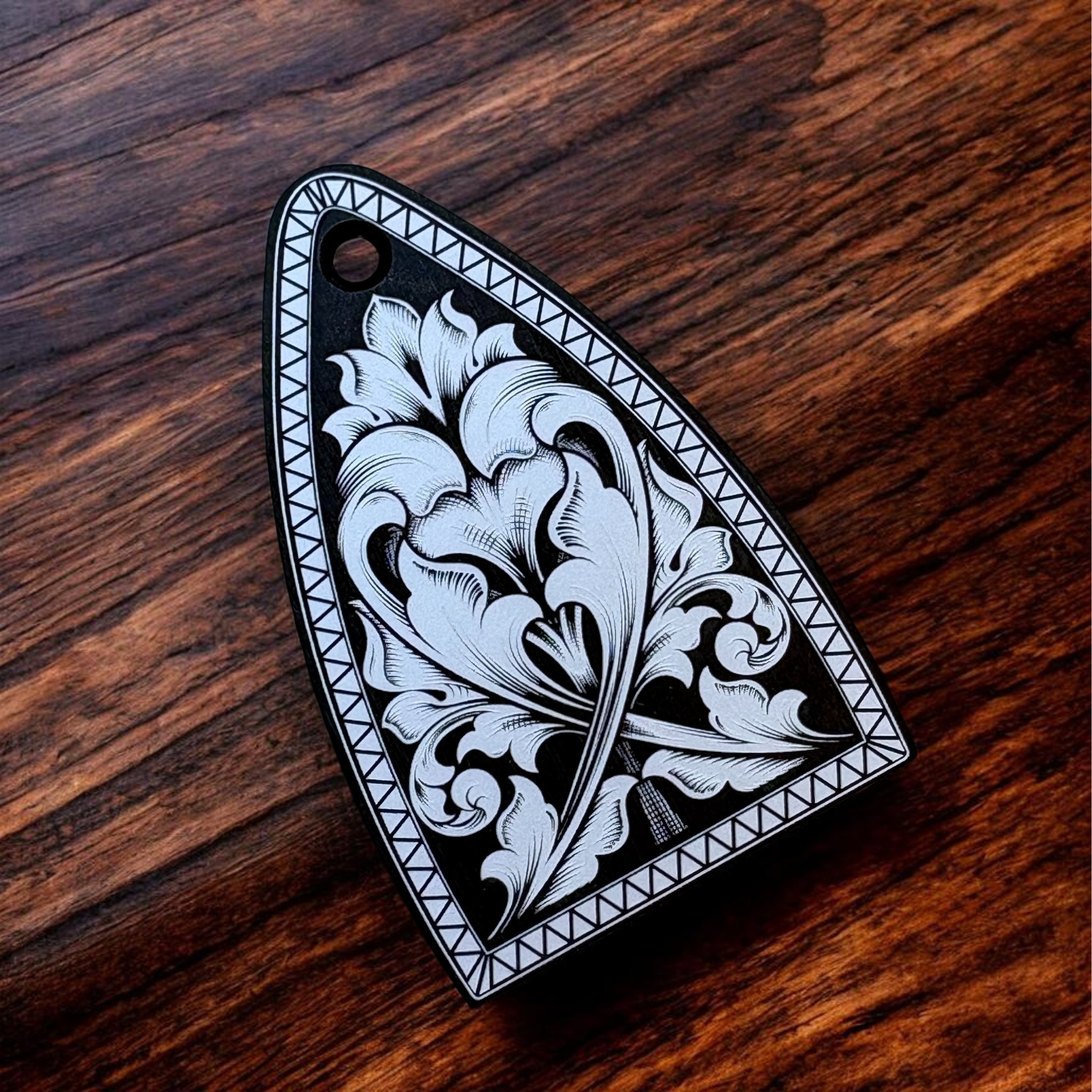 PRS Truss Rod Cover – Black with engraved floral scrollwork