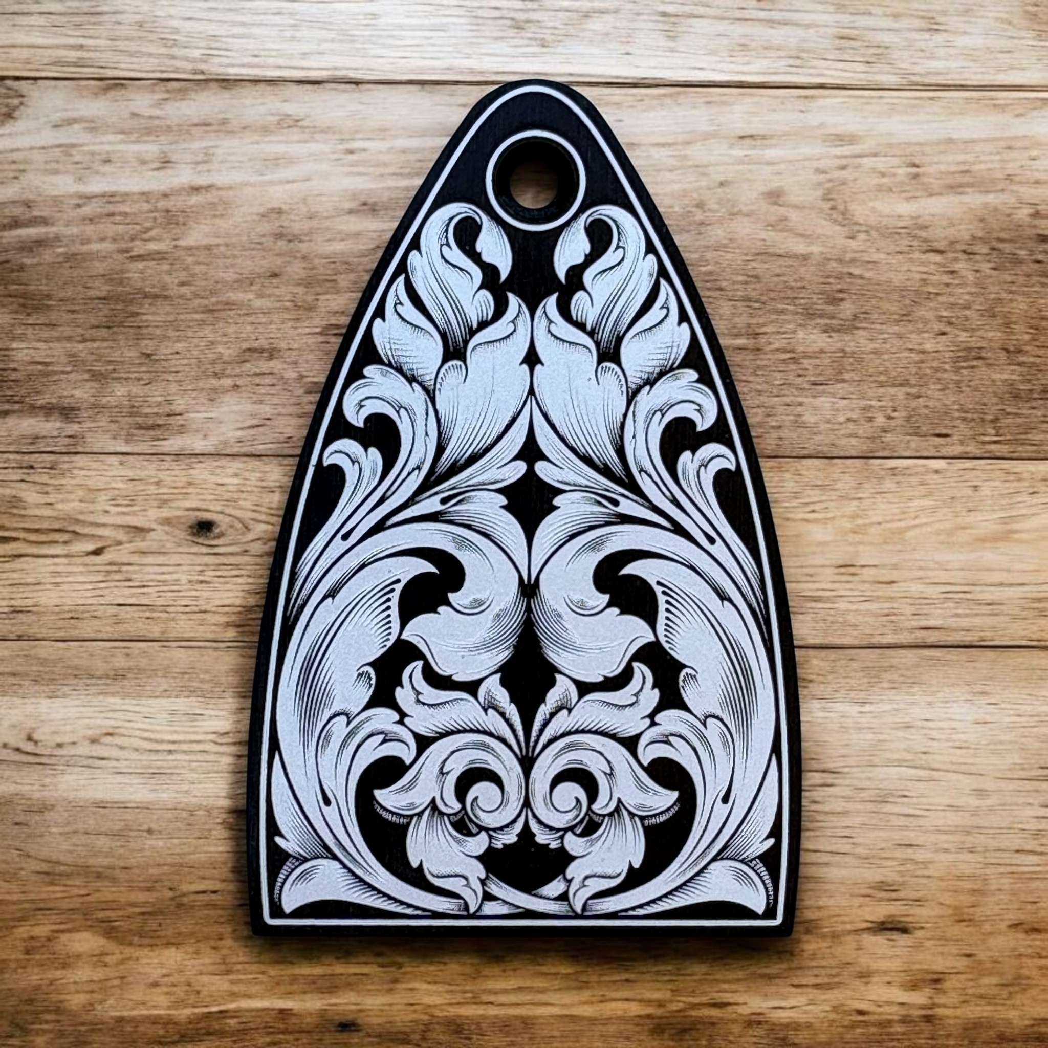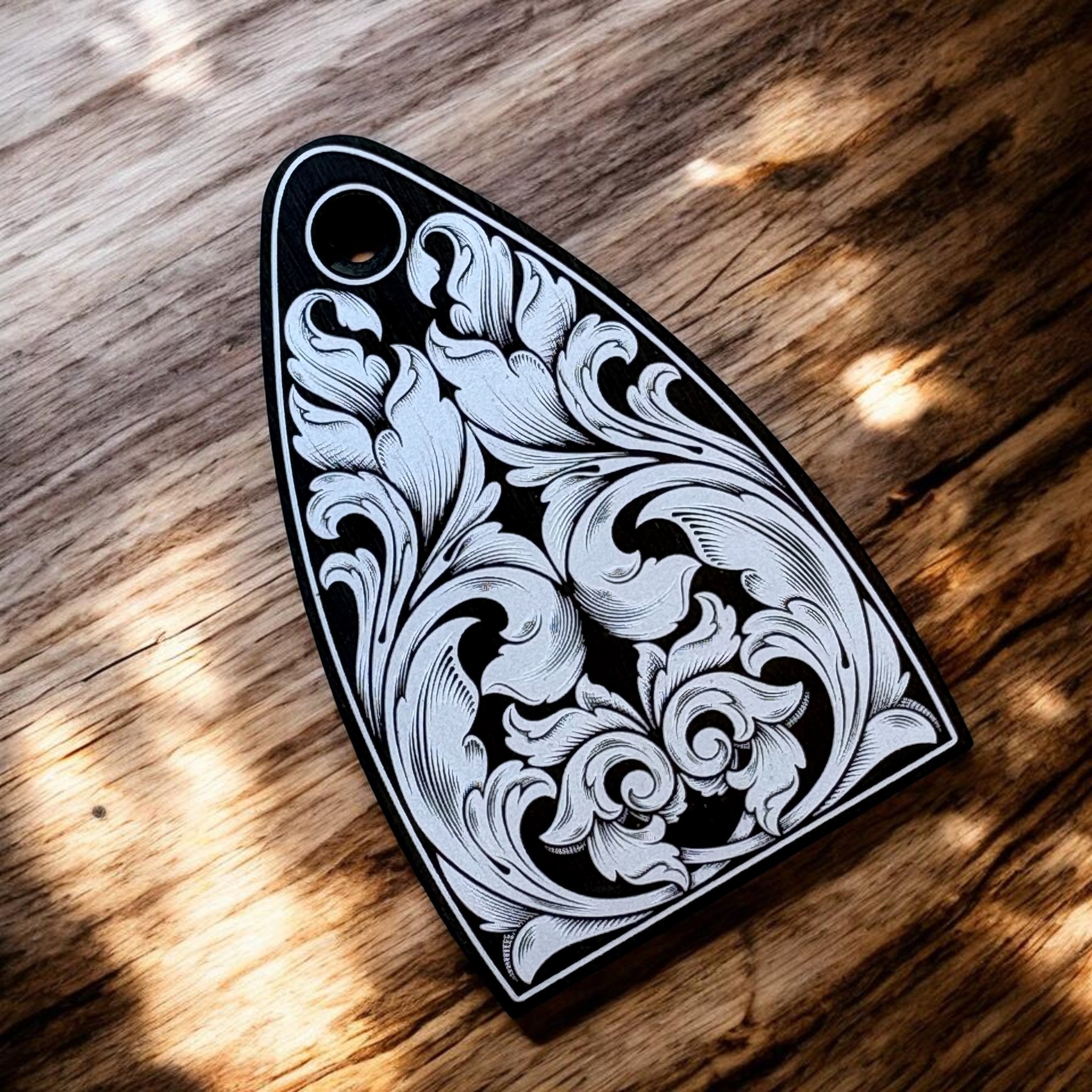 PRS Truss Rod Cover – Black – Engraved with Elegant Scrollwork